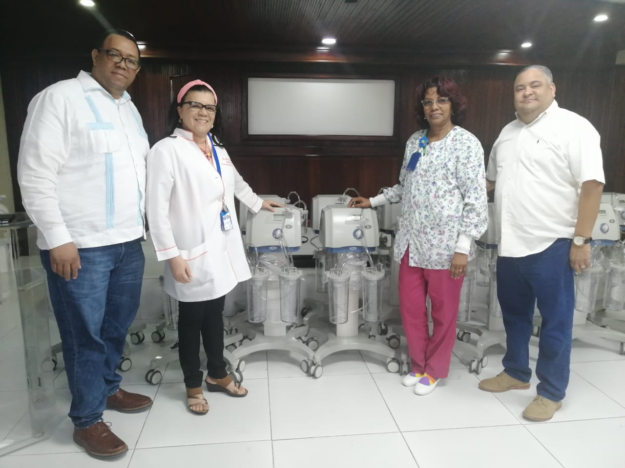 Los equipos entregados por el SNS fueron recibidos por el director, la subdirectora médica, el subdirector administrativo y la supervisora de enfermería del quirófano del hospital, el doctor Francisco Torres Lebrón, la doctora Aidee Cuás, el licenciado Gerpi Polanco y la licenciada Bethania De León.