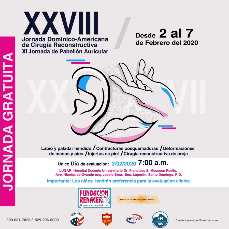 El hospital docente universitario doctor Francisco E. Moscoso Puello, en coordinación con la Fundación Renacer, realizará una jornada de cirugía reconstructiva gratuita para niños y adultos, del 02 y 07 febrero del año en curso.