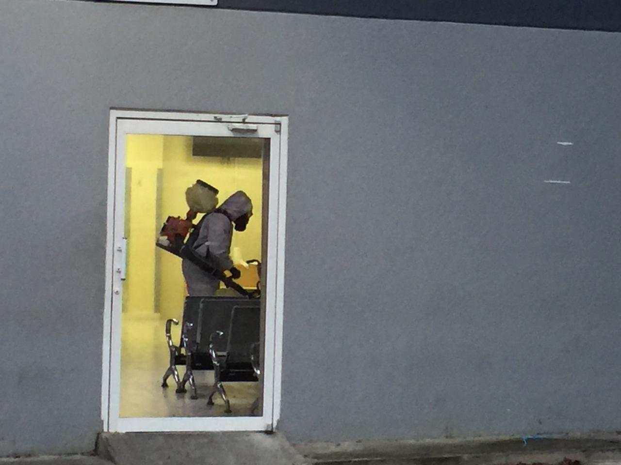 Continuaron este sábado las jornadas de limpieza y desinfección de la Unidad de Síntomas Respiratorios habilitada en el hospital doctor Francisco Moscoso Puello por disposición del Ministerio de Salud Pública para dar asistencia a pacientes sospechos de coronavirus.