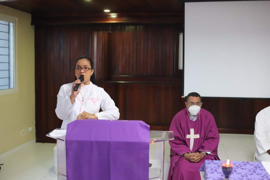 La misa fue ofrecida por el padre Gregorio Astacio Frías, en el salón de actos del hospital y fue amenizada por el coro Shemá.