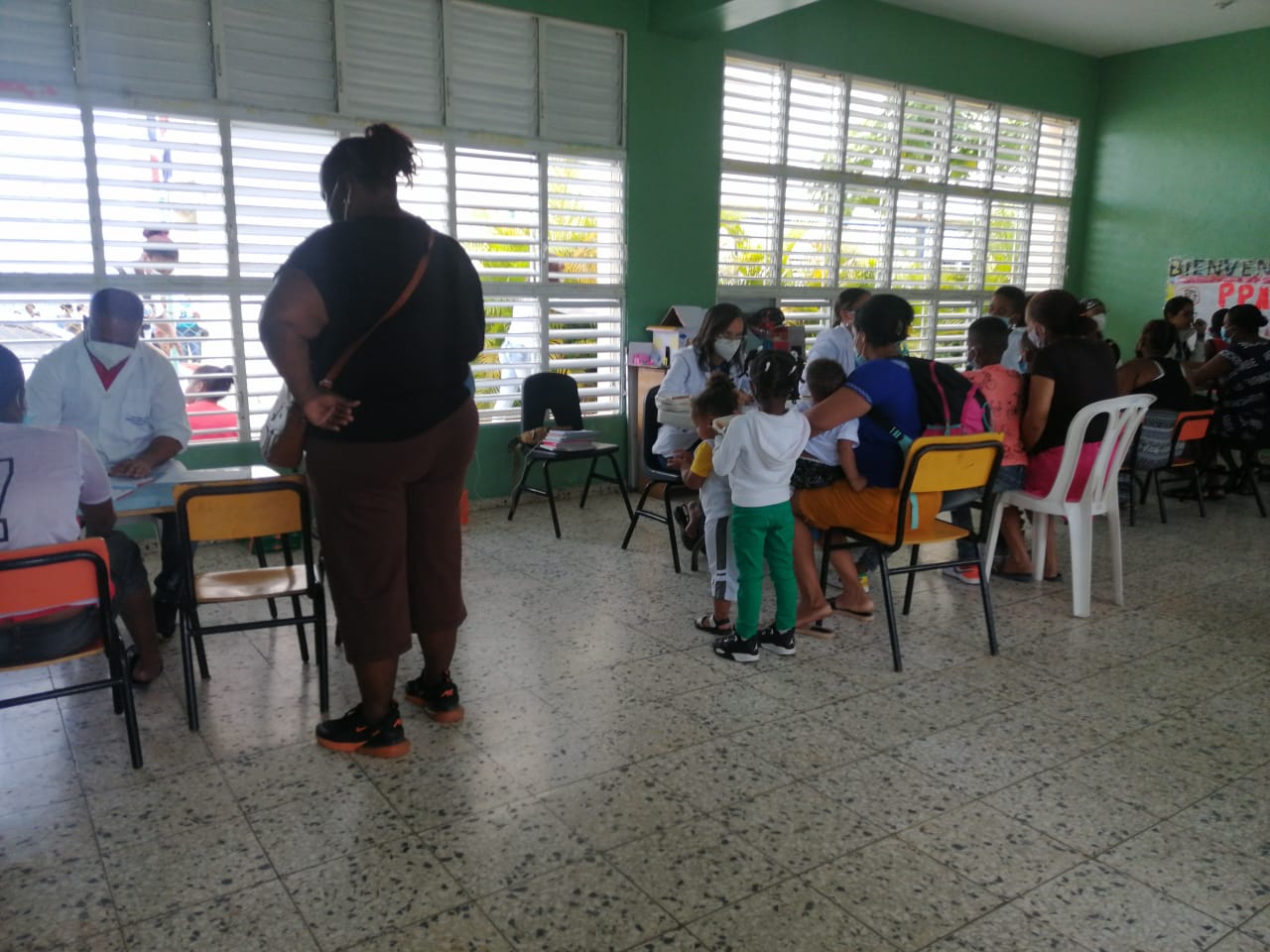 En las aulas de la escuela, donde fueron asistidos 577 ciudadanos, se inocularon cientos de niños de la comunidad con las principales vacunas, entre ellas, la de contra la difteria.