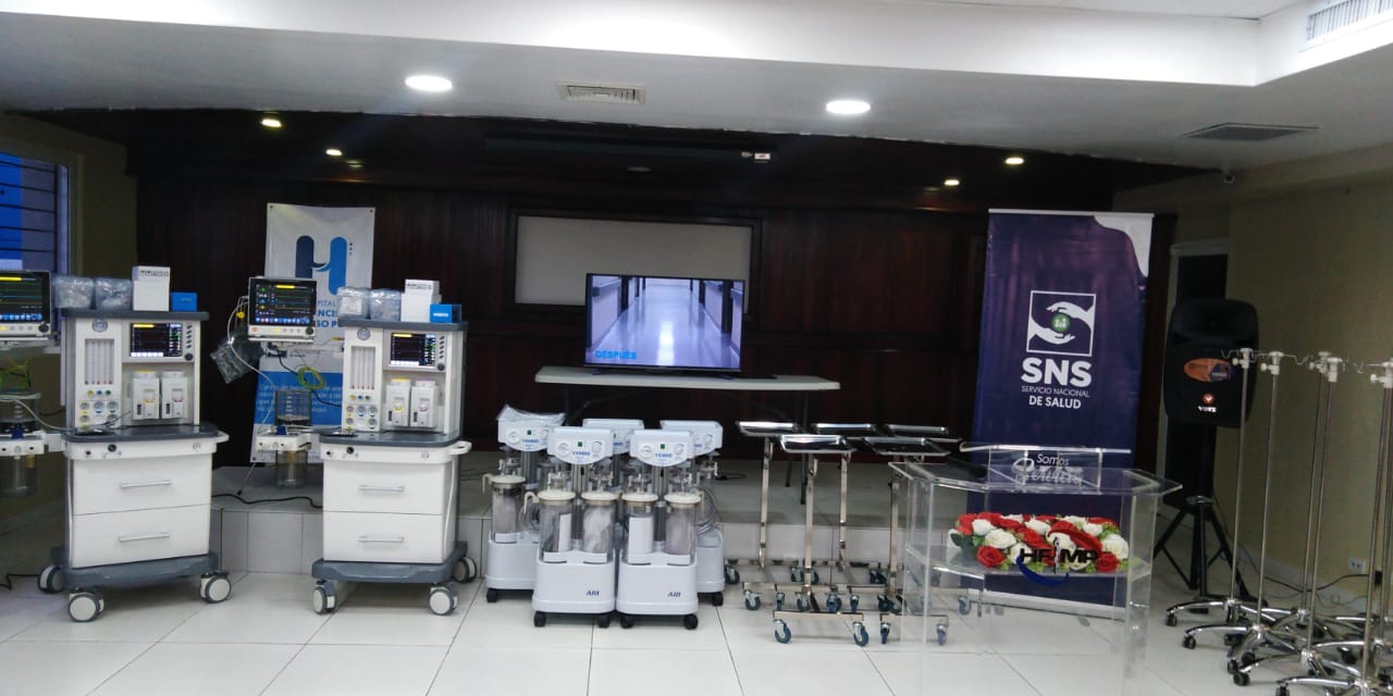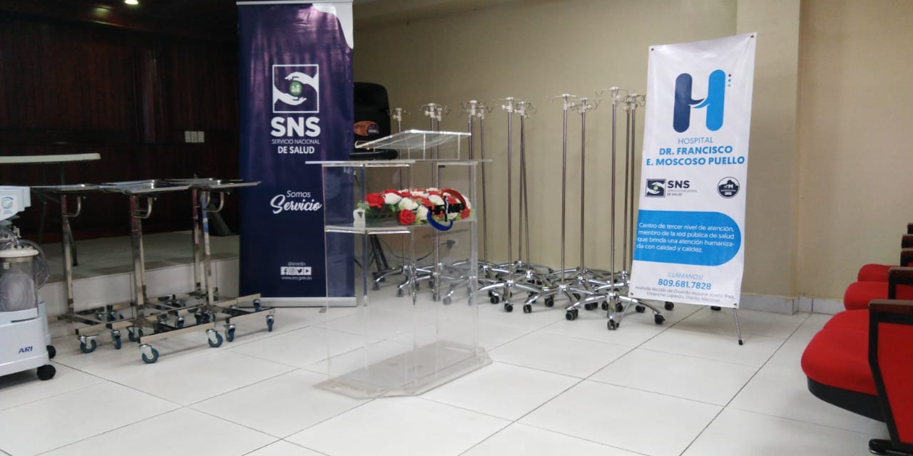 En el hospital Dr. Francisco Moscoso Puello, el SNS entregó tres máquinas de anestesia de dos gases, cuatro sets de cirugías menores, cuatro mesas de cirugías mayores, 15 pies de suero, cinco mesas metálicas tipo mayo, dos vitrinas en acero inoxidable y cinco aspiradores quirúrgicos, para un costo total de RD$2,698,248.38.