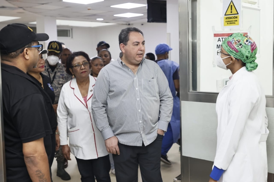 El recorrido inició en el Hospital Infantil Doctor Robert Reid Cabral y continuó en el Francisco Moscoso Puello donde el titular del SNS constató la disponibilidad de insumos, medicamentos, camas, equipos y personal para garantizar respuesta a los pacientes.